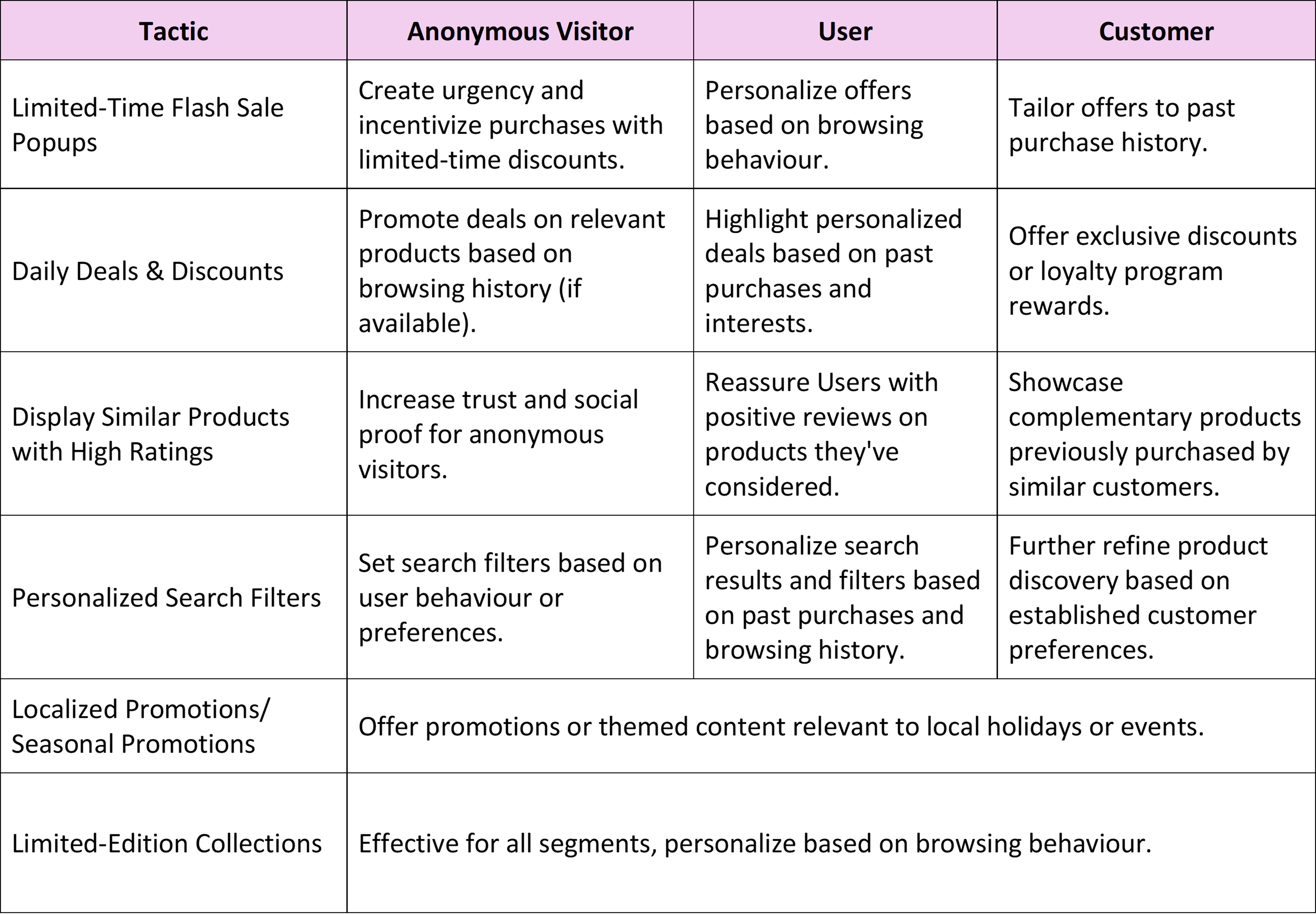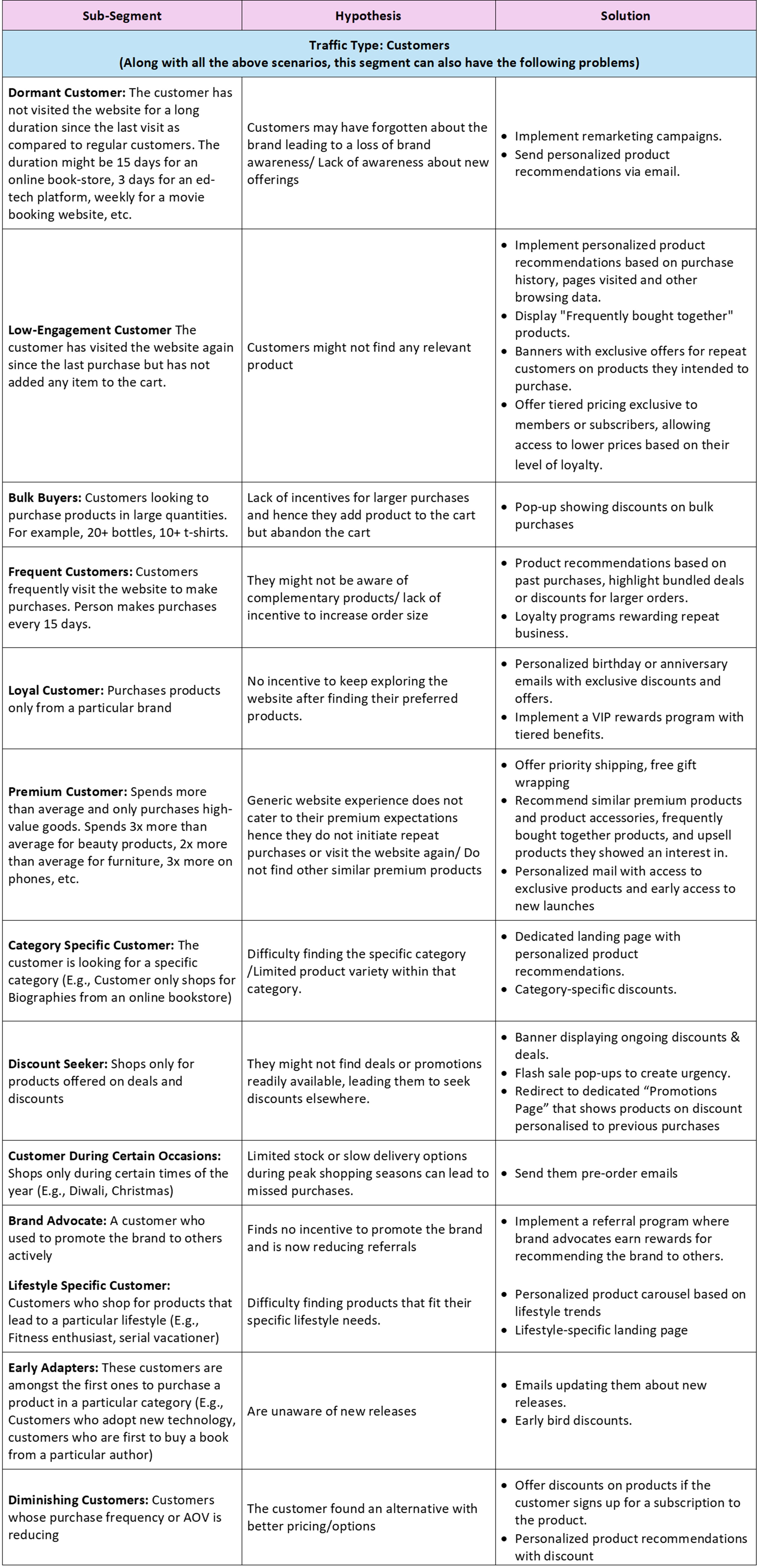 Each visitor segment in an online store presents distinct needs and challenges due to their varying characteristics, behaviors, and positions in the sales funnel. To effectively address these nuances, businesses must go beyond broad categorizations like anonymous visitors, users, and customers. A deeper segmentation approach is necessary.