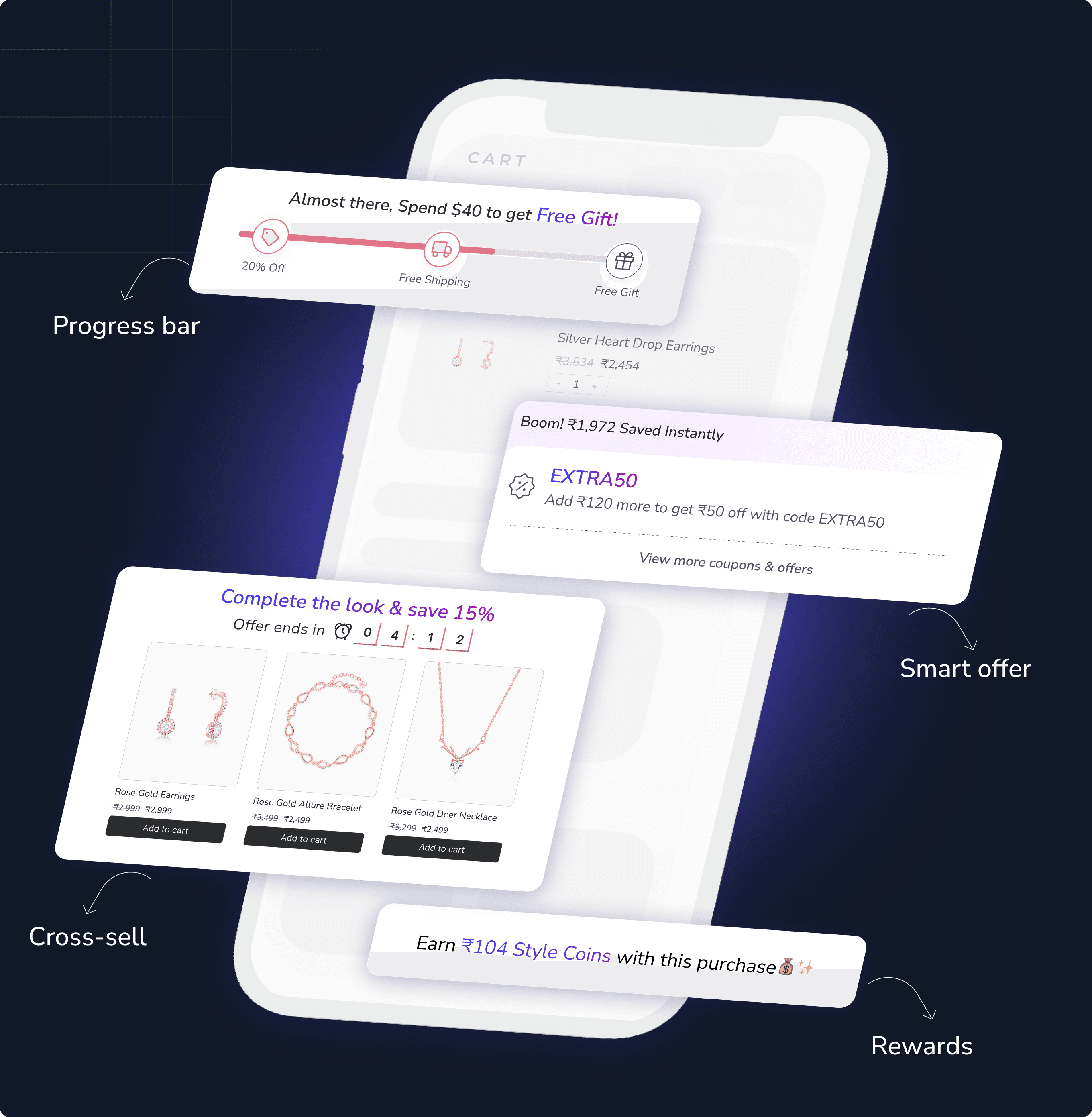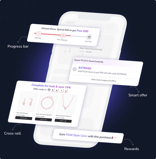Boost conversions and increase AOV by 15% with intelligent cart experiences that automatically upsell, reward, and retain customers
